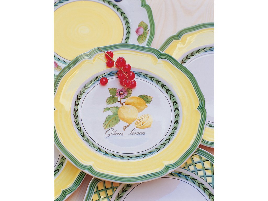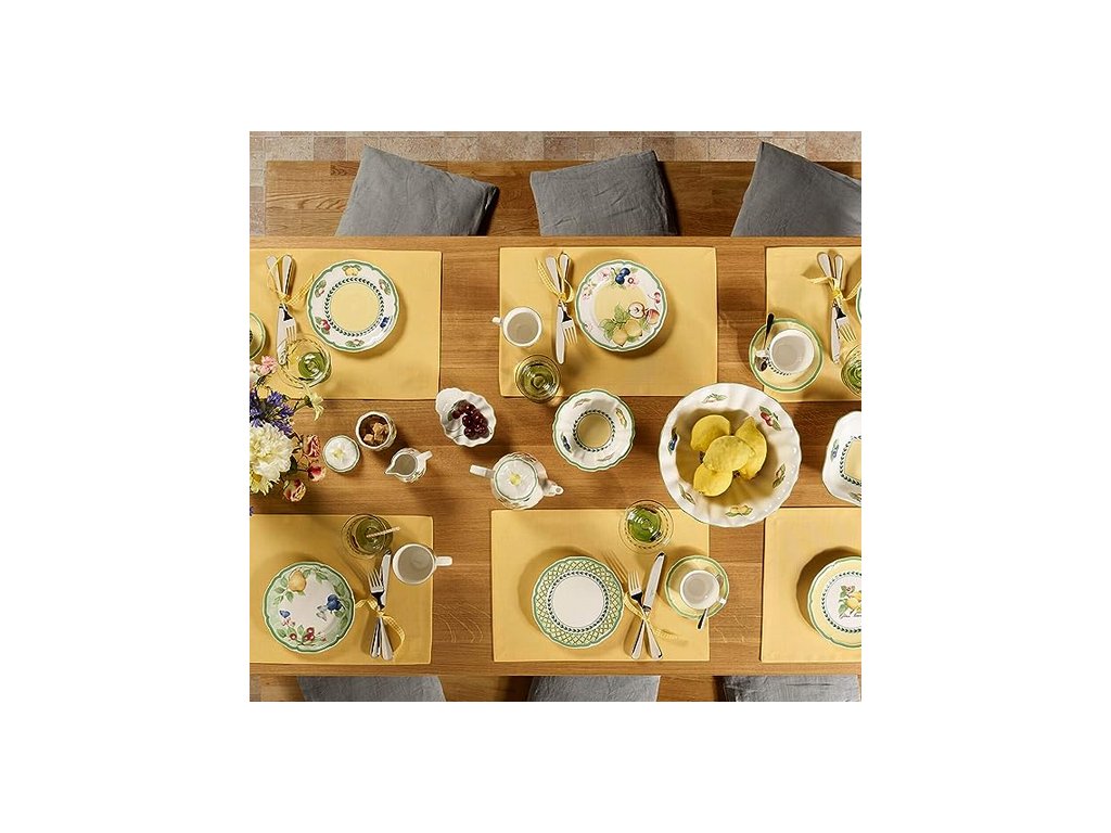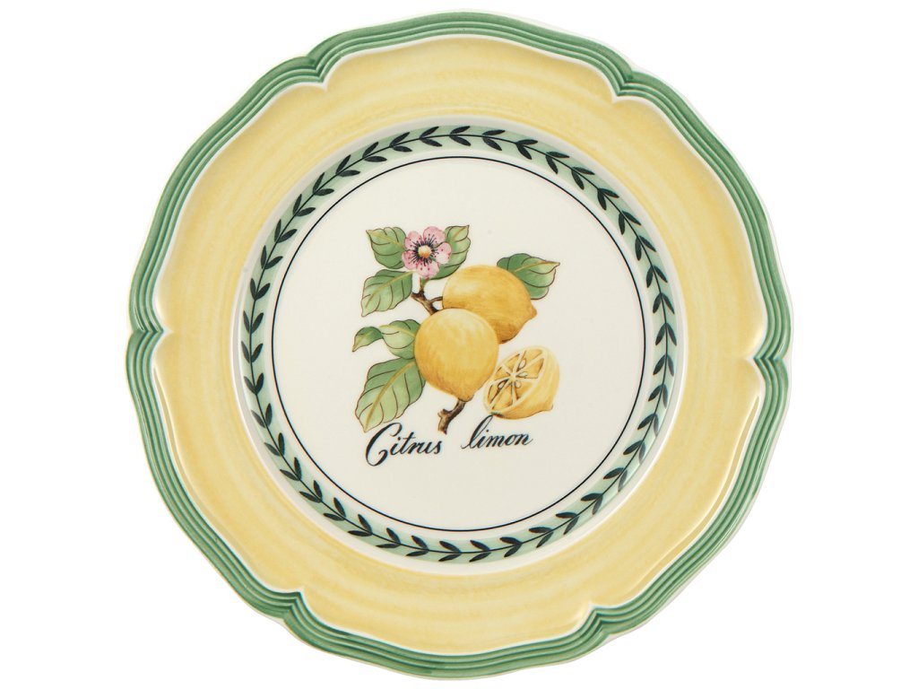 Nechajte sa omámiť chuťou práve dozretého ovocia, ktoré je motívom kolekcie French Garden Valence od svetovo preslávenej značky Villeroy & Boch. Tradičné prvky vidieckeho života sa premietli na prémiový porcelán a ozdobí aj vašu domácnosť. Motív ovocie je zasadený do sviežej žltej farby so zelenou linkou a rustikálnym zdobením. Tento prírodný vzor je vhodný pre všetkých vyznávačov jednoduchého, ale pritom hravého štýlu.