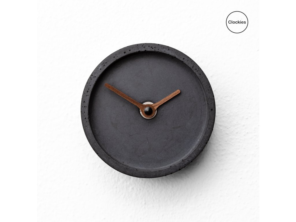 Antracitové stolové hodiny v tvare kruhu s drevenými ručičkami z orecha.