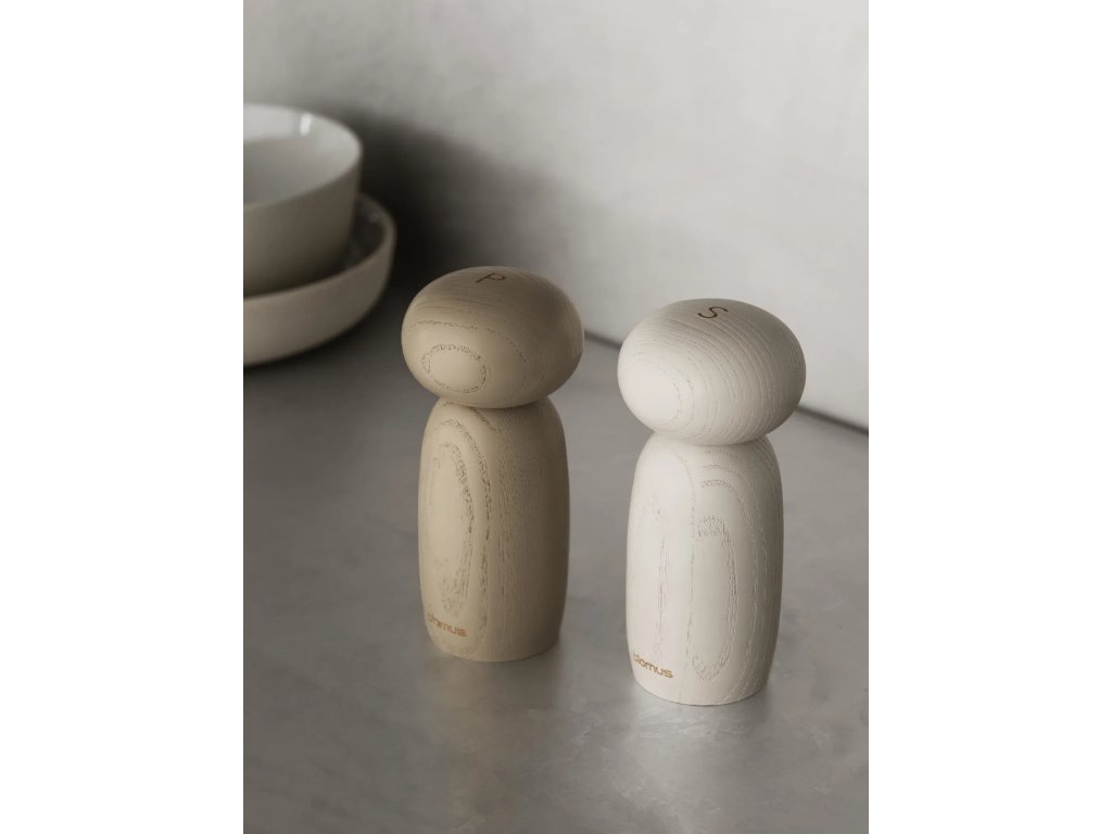 Mlynček na soľ a korenie z kolekcie MOLI spája funkčnosť s čistým dizajnom značky Blomus. Povrch v kombinácii farieb Mesačný lúč a Nomád pôsobí jemne a nadčasovo, takže sa perfektne hodí do modernej kuchyne aj na slávnostne prestretý stôl. Rozmery (V 13 cm, Ø 6 cm) zaručujú pohodlné používanie aj ľahké uskladnenie.