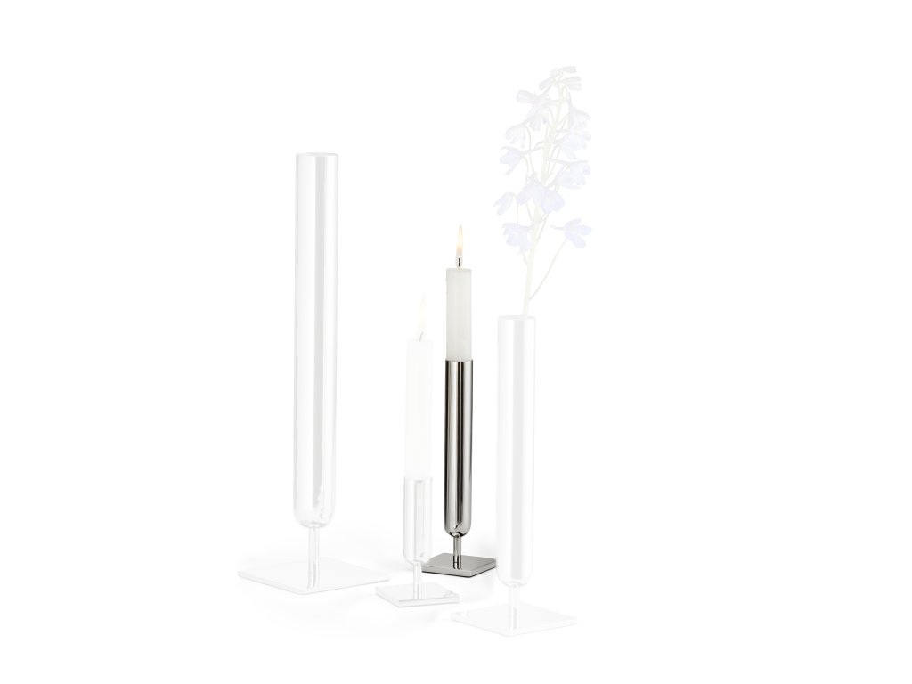 Minimalistické línie nechávajú vyniknúť detailom: v úzkom svietniku zažiaria plamene, vo váze zase stačí jediný kvet alebo vetvička, aby pôsobili silnejšie ako preplnená kytica. Lambda sa tak stáva univerzálnym doplnkom – od svadieb a osláv až po sviatočnú tabuľu či pokojný večer doma.