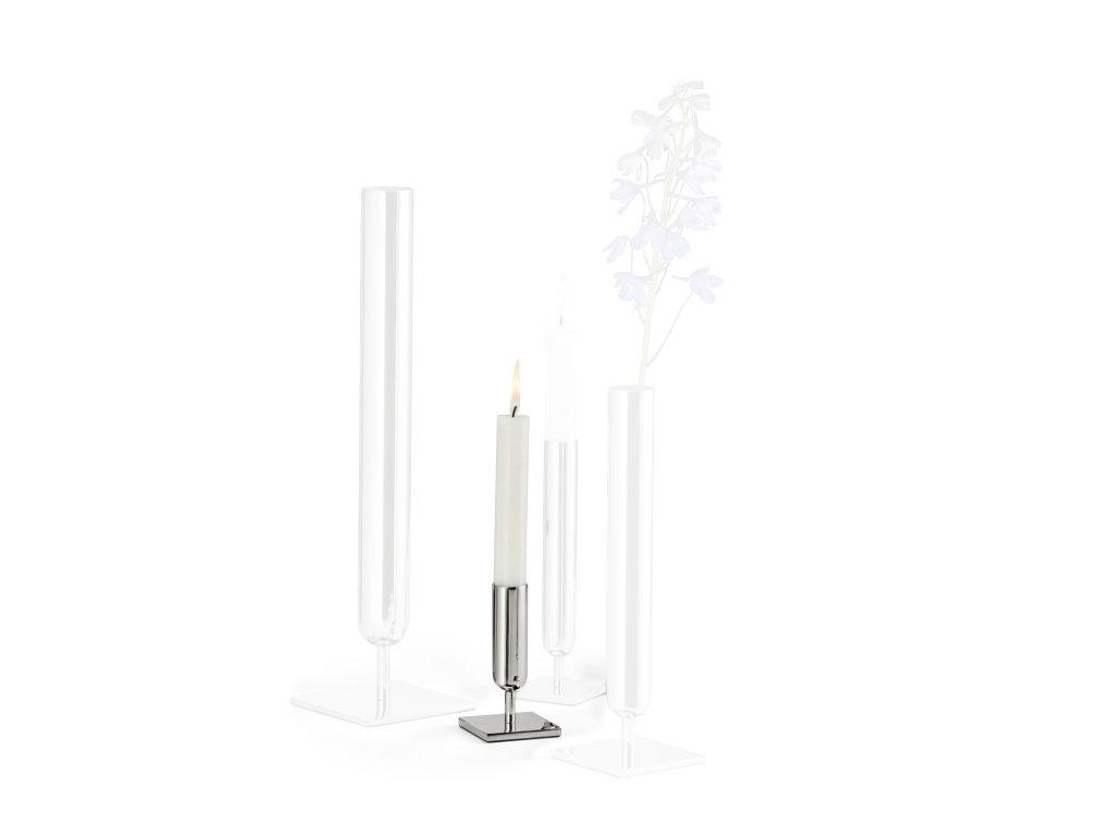 Minimalistické línie nechávajú vyniknúť detailom: v úzkom svietniku zažiaria plamene, vo váze zase stačí jediný kvet alebo vetvička, aby pôsobili silnejšie ako preplnená kytica. Lambda sa tak stáva univerzálnym doplnkom – od svadieb a osláv až po sviatočnú tabuľu či pokojný večer doma.