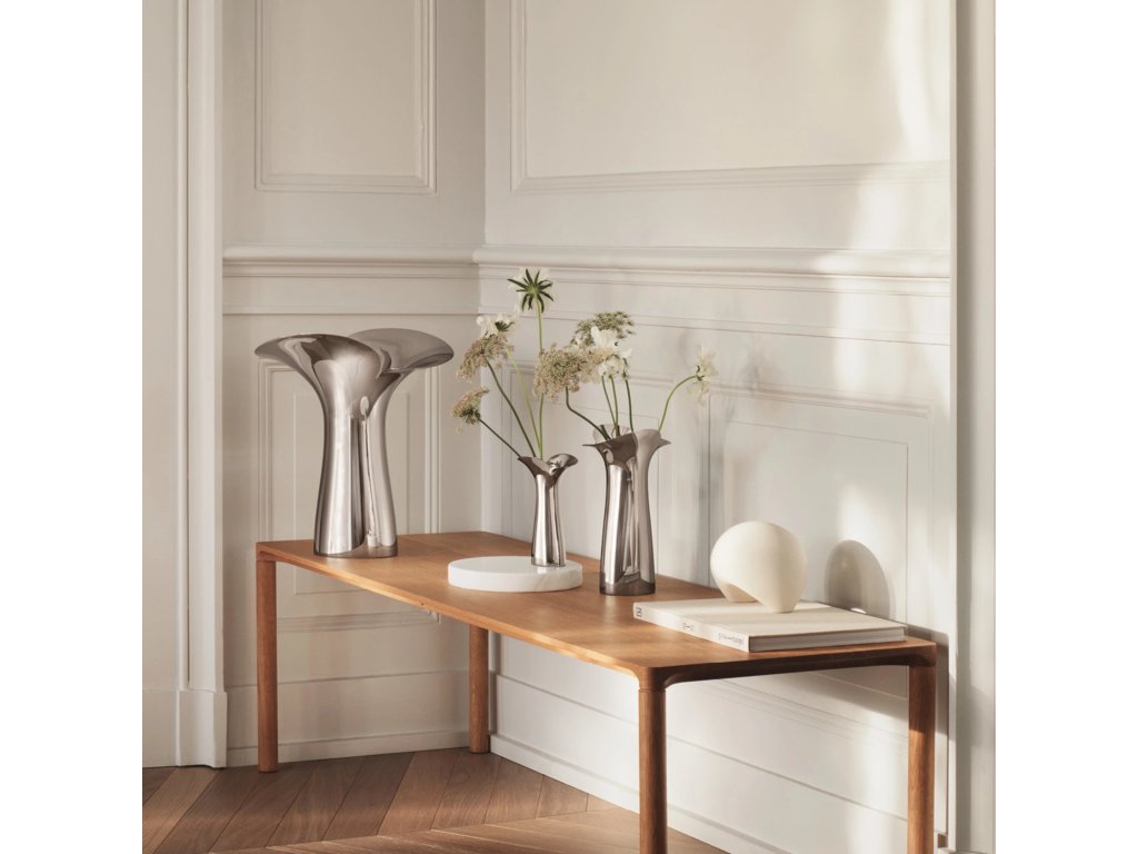 Jemný okamih, kedy sa púčik kvetu otvára a odhaľuje svoje okvetné lístky – práve týmto momentom je inšpirovaná ikonická váza Bloom Botanica od dánskej značky Georg Jensen. Jej organický tvar zachytáva radosť jari a prenáša ju do moderného interiéru v nadčasovej, sochárskej podobe.