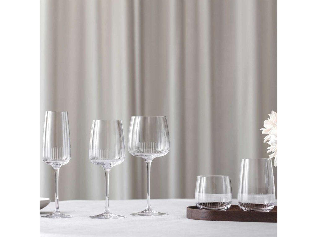Kolekcia neobsahuje iba poháre, ale v rovnakom štýle je možné zaobstarať aj porcelán, ktorý je taktiež zdobený jemnými lúčmi.