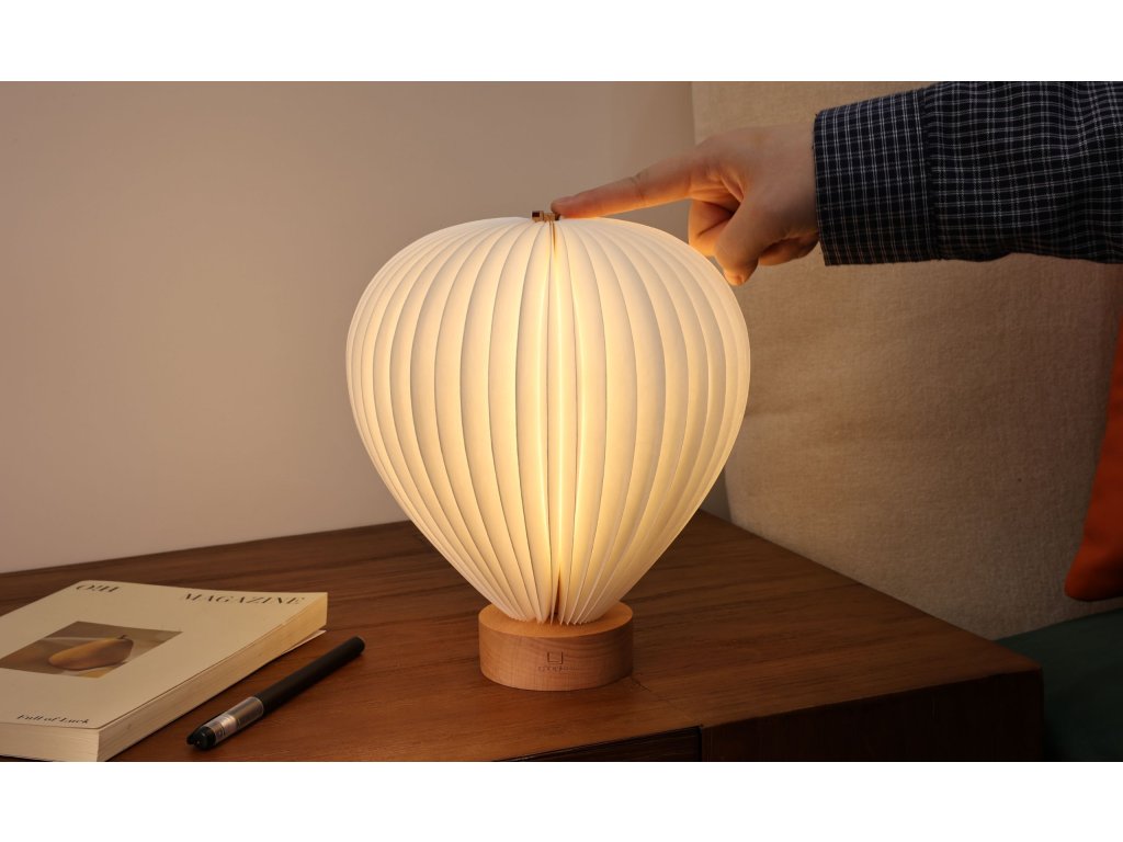 Po otvorení lampa pripomína teplovzdušný balón - pokojný, vznášajúci sa, jemne osvetlený. Svetlo sa s rozkladajúcimi „stránkami“ rozširuje smerom nahor a premieňa lampu na žiariaci objekt, ktorý pôsobí súčasne hravo i sofistikovane.