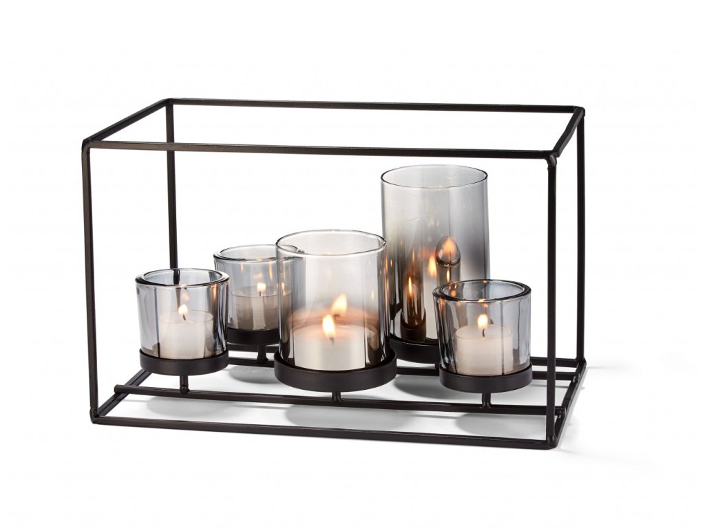 Vždy ste si priali pozorovať rybičky v akváriu, ale nechceli ste sa o ne starať? Svietnik York vám poskytne podobný upokojujúci zážitok bez zbytočných starostí. Vnútri bytelného kovového rámu sa nachádza päť svietnikov, tri v tvare poháru a dva v tvare valca. Spoločne potom vytvárajú jedinečnú hru so svetlom.