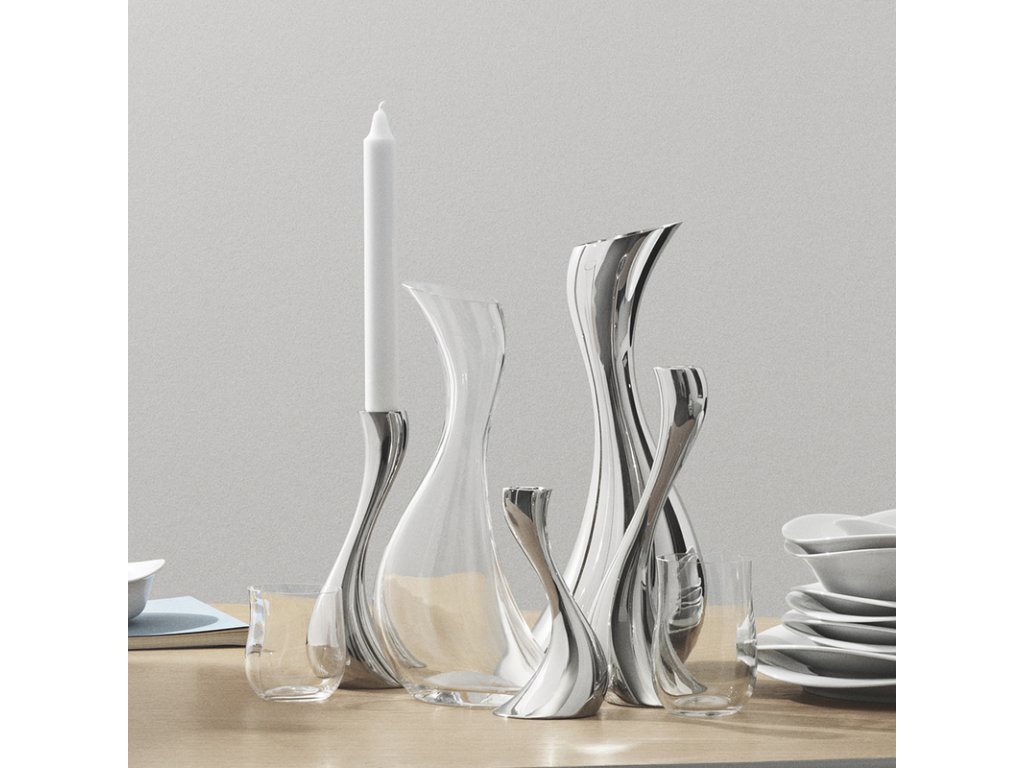 Džbán Cobra je unikátnym dizajnovým kúskom, priamo priťahujúcim pozornosť očí na svoje ladné krivky pripomínajúce zvíjajúce sa telo mýtického hada, ktorého má aj v názve celá táto kolekcia riadu. Vďaka spojeniu exkluzívneho dizajnu oblečeného do leštenej nerezovej ocele a funkčnosti sa stane štýlovým doplnkom vašej domácnosti a vítaným pomocníkom pri servírovaní vody či dobrého vína.