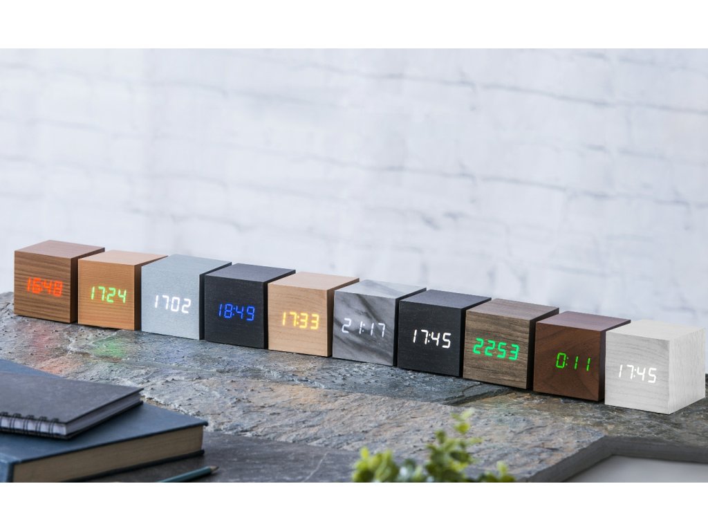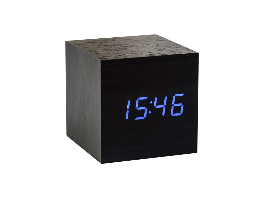 Budík "Cube Click", čierna / modrá - Gingko