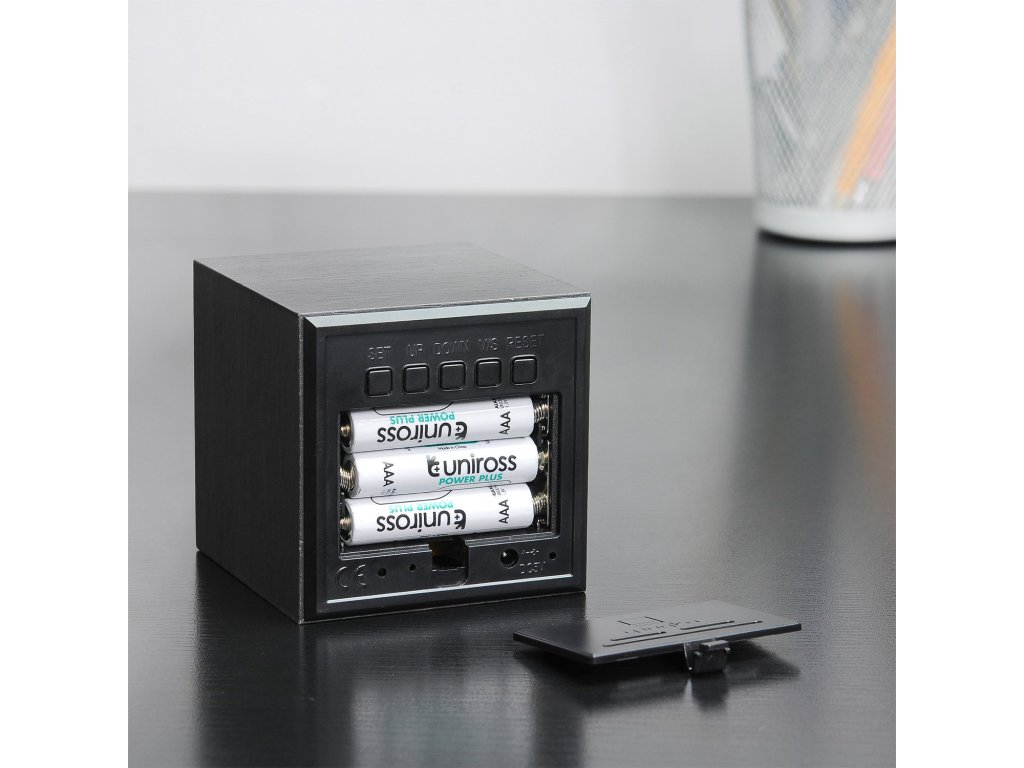 O napájanie sa starajú 3 batérie typu AAA (mikrotužkové) alebo USB kábel, ktorý je v balení. Alarm budíka má 3 možnosti nastavenia s až minútovým pípaním v kuse. Okrem času zobrazuje teplotu, dátum a dokáže tlmiť jas v noci.
