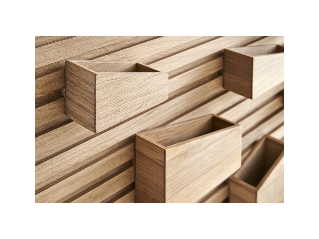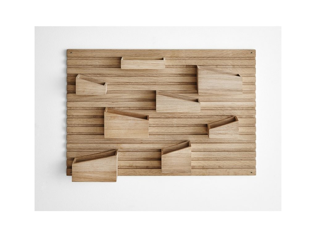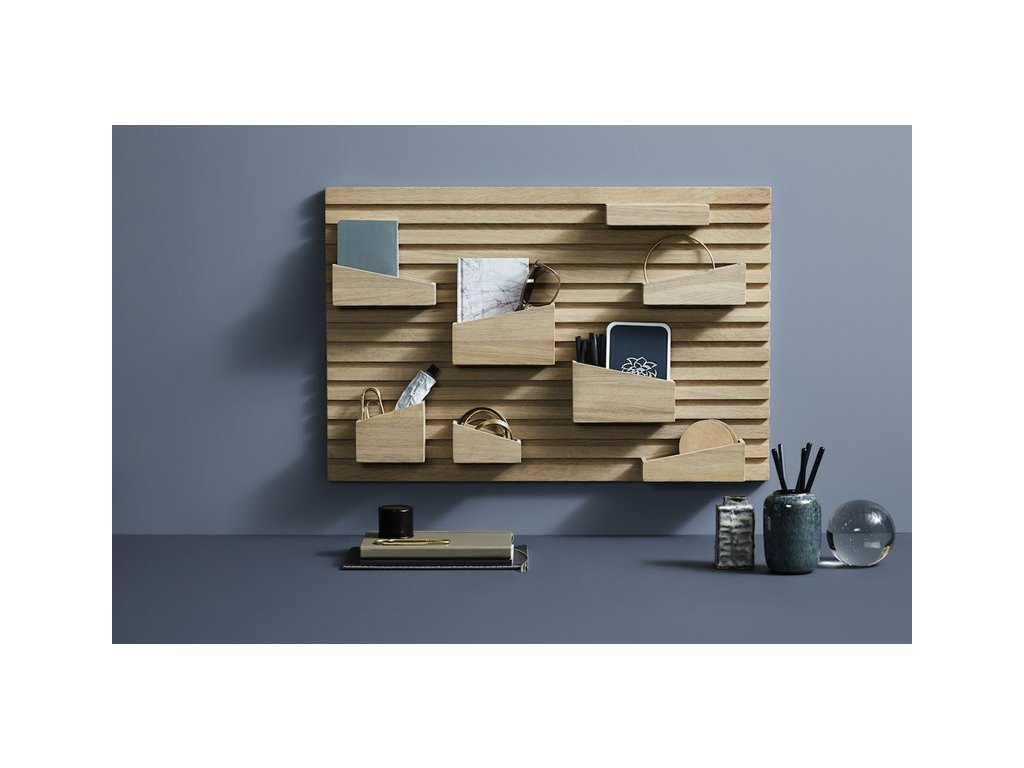 Vložte do organizéra Input všetky drobnosti, ktoré chcete mať na dosah ruky. Input disponuje ôsmimi pohyblivými priehradkami rôznych rozmerov a tvarov. Vďaka tomu môžete organizér upraviť presne podľa svojho vkusu a želania. Svoj nový domov v ňom môže nájsť váš diár, puzdro s okuliarmi, obľúbené perá a ďalšie nevyhnutnosti. Dizajn je perfektným riešením pre usporiadanie malých každodenných potrieb v chodbe, kancelárii alebo spálni. Skvele sa bude hodiť nad váš pracovný stôl. Je vyrobený z mäkkého duba, ktorý citlivo dopĺňa hranaté a grafické línie organizéra. Svoj talent do projektu vložili dve dánske dizajnérky Anne Holm a Sigrid Smetana.