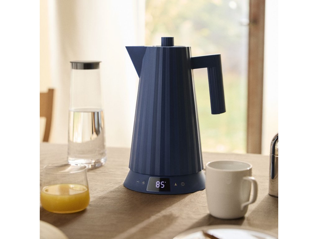 Rýchlovarná kanvica Plissé 1,7L s voľbou teploty vody, modrá - Alessi