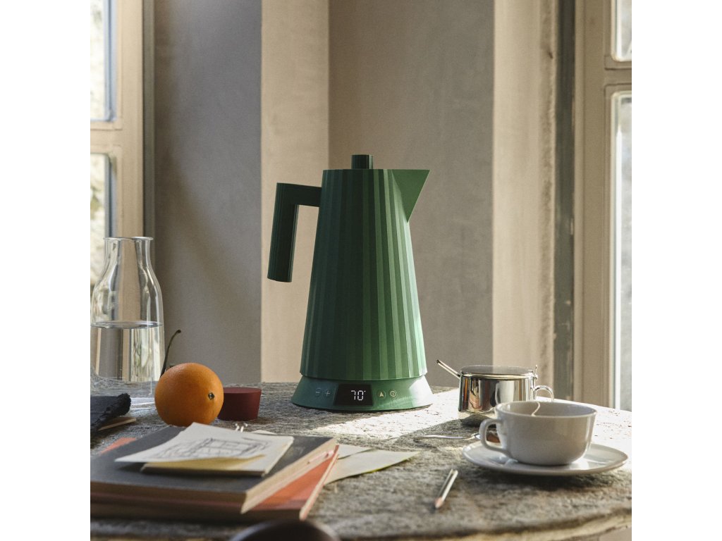 Rýchlovarná kanvica Plissé 1,7 L s voľbou teploty vody, zelená – Alessi