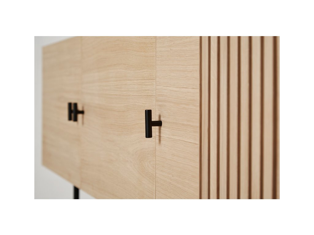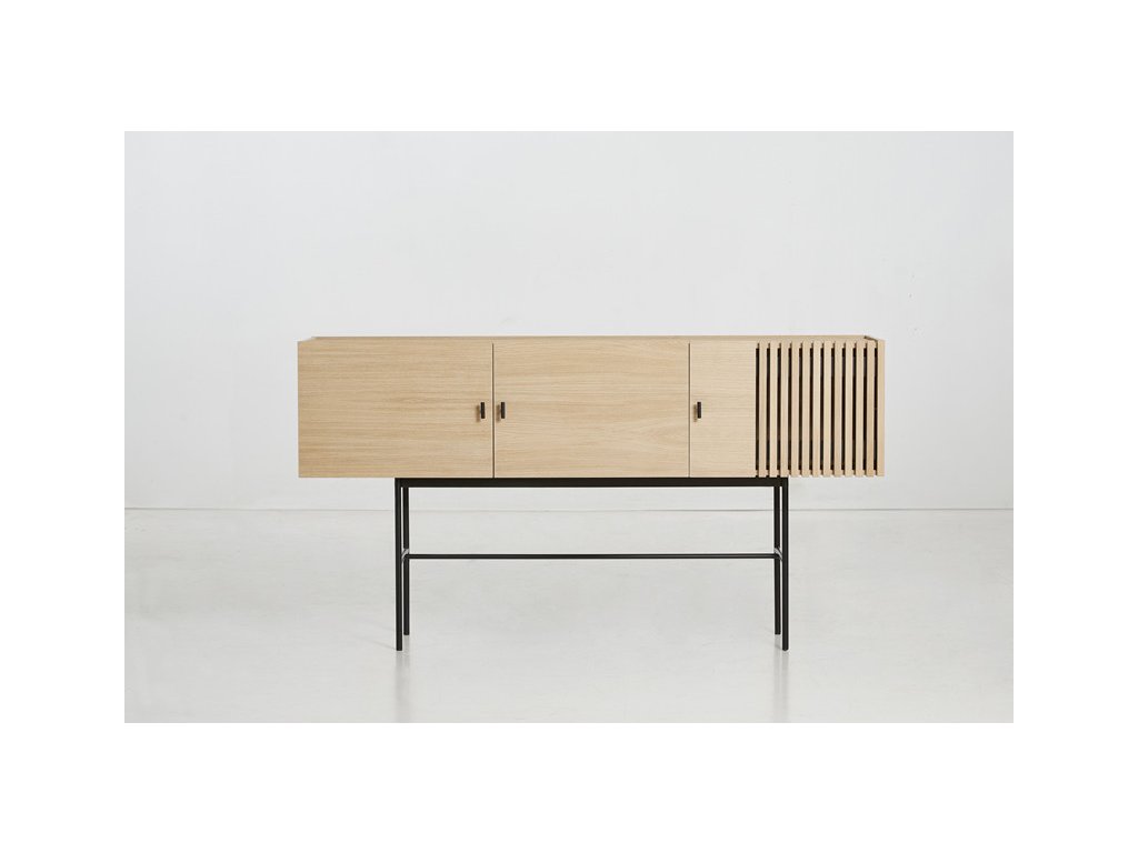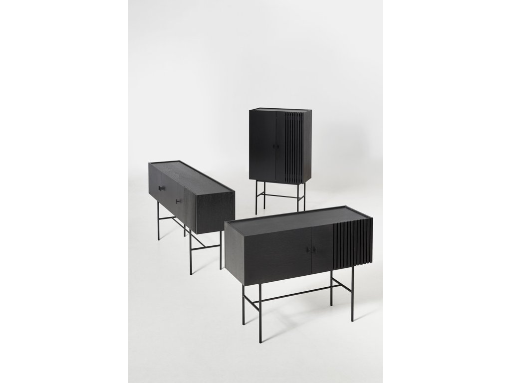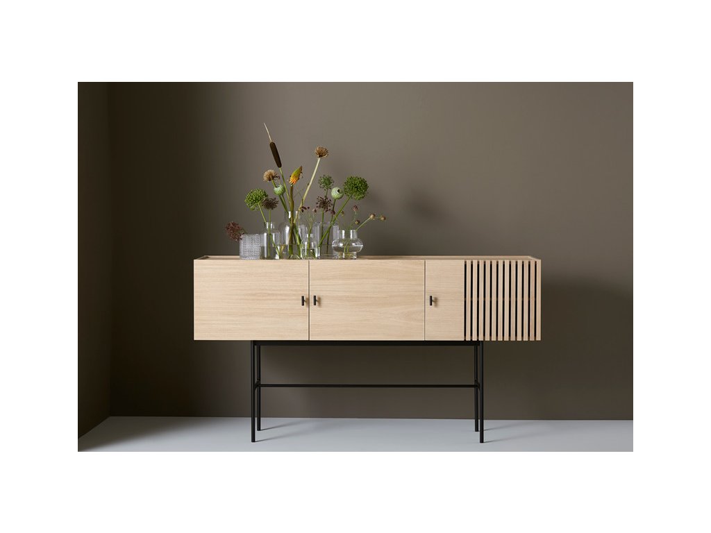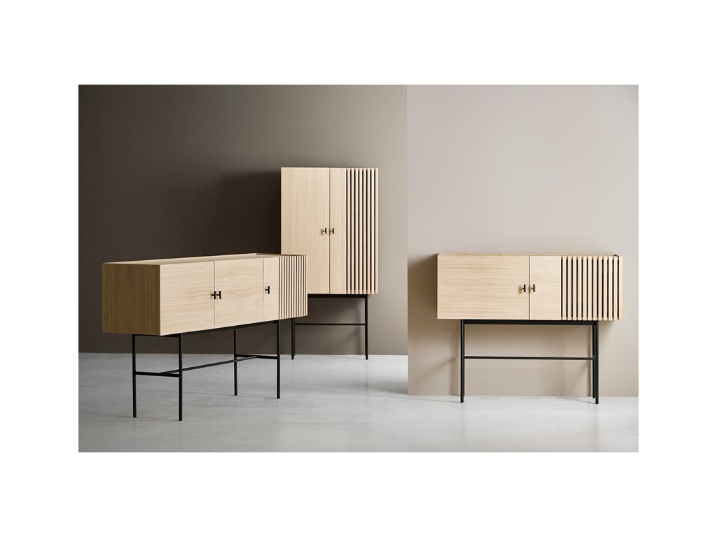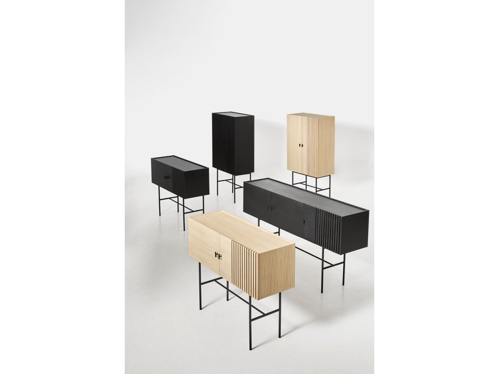 Kolekcia komôd Array vás na prvý pohľad upúta nevšedným kontrastom medzi masívnou vrchnou časťou z dreva a tenkou kovovou konštrukciou pod ňou. Za návrhom stojí dánske dizajnérske štúdio Says Who, ktoré založil Kasper Meldgaard a Nikolaj Duve. Komody sú inšpirované dreveným obkladom z bridlice, ktorý môžete nájsť v modernej architektúre. Vďaka svojmu geometrickému tvaru a vodorovným lamelám zanechávajú komody Array silný vizuálny zážitok. Svetlo a tieň sa zachytávajú hlboko v lamelách, a tým vytvára ilúziu transparentnosti. Tá vo vás vyvolá pocit rastúcej zvedavosti, keď budete chcieť odhaliť to, čo sa skrýva za zatvorenými dvierkami. A že sa toho tam vďaka veľkorysému úložnému priestoru zmestí naozaj veľa. Komoda je dostupná v niekoľkých výškach a šírkach, takže nepochybujeme, že si medzi nimi vyberiete tú svoju. A vlastne nemusíte zostať len pri jednej, že?