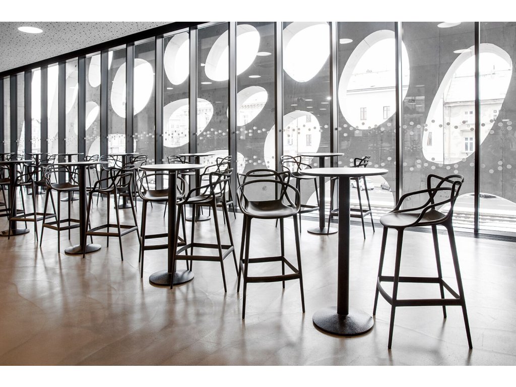 Nízka barová stolička Masters Stools prišla v roku 2013 ako akési pokračovanie jedálenskej stoličky Masters vytvorenej majstrovským duom Philippe Starck a Eugeni Quitllet… Tí už v roku 2010 prepojili odkaz troch dizajnérskych es a ich troch ikonických počinov: Tulipán od Arnea Jacobsena a Eiffelovho kresla podľa návrhu Charlesa Eames. A majstrovským spôsobom uctili všetkých troch majstrov aj moderný dizajn zároveň.