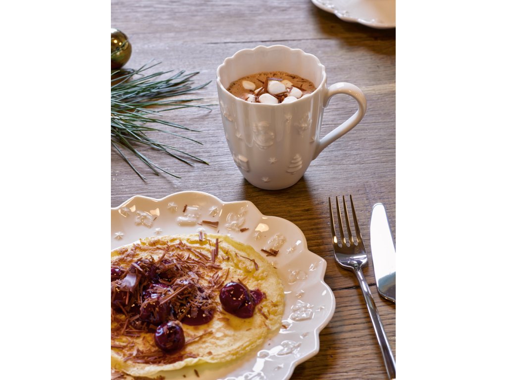 Celá kolekcia je farebne unifikovaná a zvolená biela glazúra dáva na obdiv nepoškvrnenú krásu materiálu, na ktorého povrchu sú ornamenty v tvare snehových vločiek, vianočného stromčeka, hviezdičiek a zvončekov. Hravej ozdobnosti potom dominuje držadlo na veku cukorničky a dózičky v tvare vianočných darčekov. Všetok dekor je prepracovaný a v detailnej podobe vystupuje z riadu, keď po jeho hladkom povrchu ľahko prejdete prstom, aby ste na vlastnú kožu pocítili dotyk tejto úchvatnej nádhery.