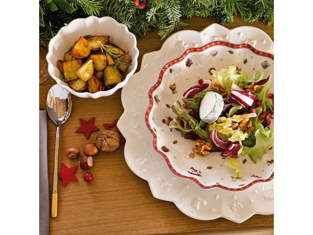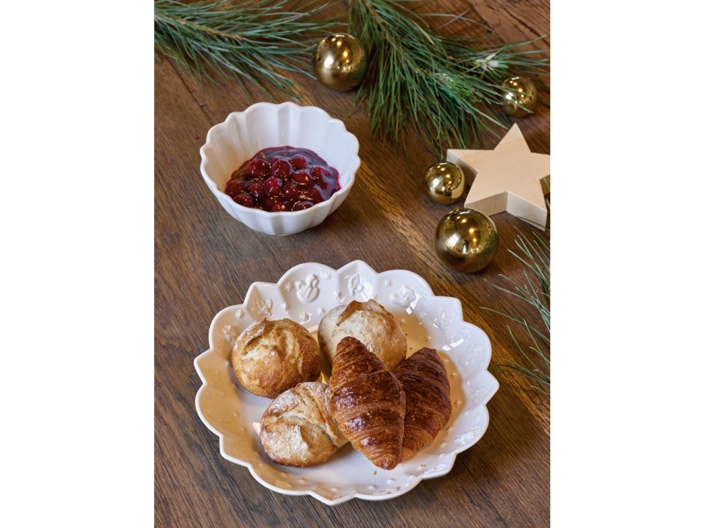 Celá kolekcia je farebne unifikovaná a zvolená biela glazúra dáva na obdiv nepoškvrnenú krásu materiálu, na ktorého povrchu sú ornamenty v tvare snehových vločiek, vianočného stromčeka, hviezdičiek a zvončekov. Hravej ozdobnosti potom dominuje držadlo na veku cukorničky a dózičky v tvare vianočných darčekov. Všetok dekor je prepracovaný a v detailnej podobe vystupuje z riadu, keď po jeho hladkom povrchu ľahko prejdete prstom, aby ste na vlastnú kožu pocítili dotyk tejto úchvatnej nádhery.