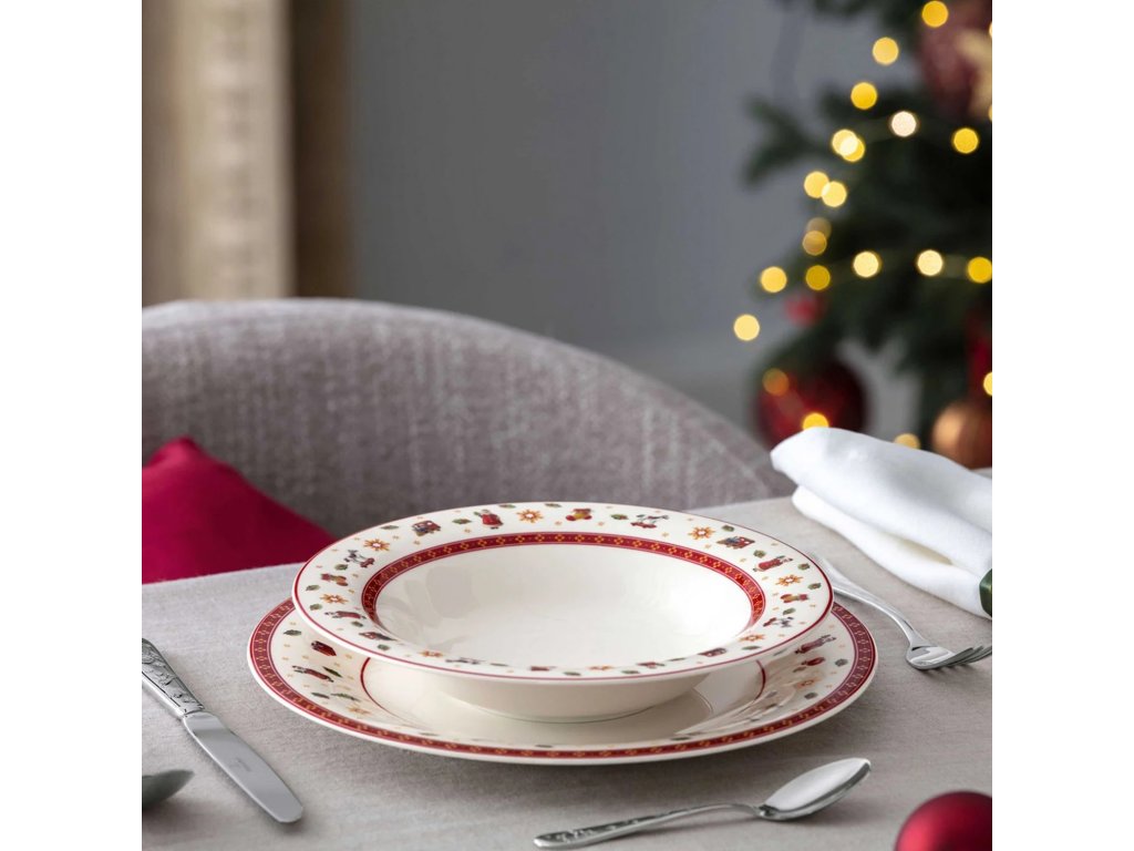 Polievkový tanier Toys Delight Specials s priemerom 23 cm v elegantnom bielom prevedení od Villeroy & Boch je perfektnou voľbou na servírovanie polievok a ďalších teplých pokrmov počas vianočných sviatkov. Tento tanier je súčasťou slávnostnej kolekcie Toys Delight, ktorá prináša radostné vianočné motívy a evokuje spomienky na tradičné rodinné chvíle pri sviatočnom stole.