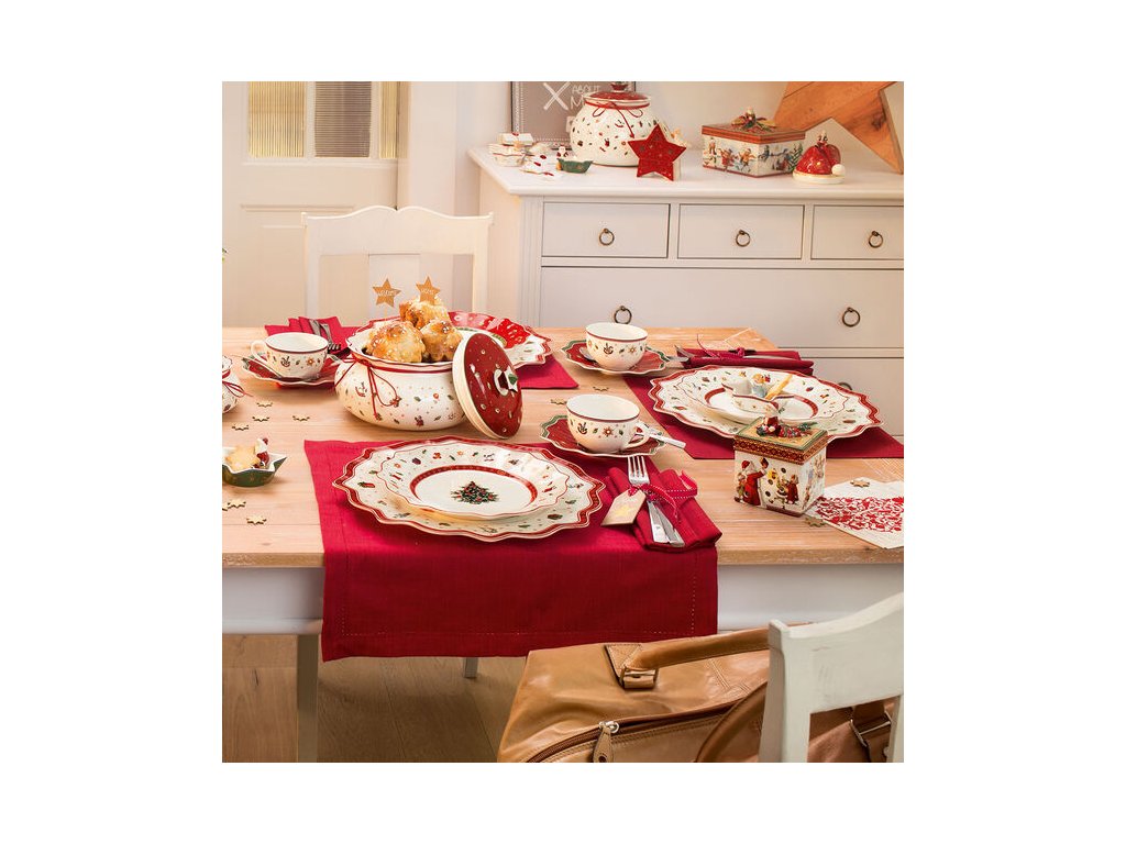 Kolekcia Toy's Delight od nemeckej firmy Villeroy a Boch je esenciou Vianoc a vianočnej atmosféry, ktorou návrhári doslova pretkali všetky tri krásne produkty, ktorými sa kolekcia pyšní. Čo môže viac evokovať vianočný čas než nazdobený stromček plný svetielok, na ktorý sa pomaly znášajú belostné snehové vločky? Tento a ďalšie motívy môžete nájsť na jedinečných prestieraních, zo 70 % bavlnených, v dvoch farebných variáciách - bielo-červenej a červeno-zelenej - a na látkovej ošítke na pečivo, s ktorou získajú spoločne trávené chvíle pri jedálenskom stole pôvabný sviatočný nádych, vďaka ktorému si náležite užijete štedrovečernú rodinnú večeru u čarovne nazdobenej slávnostnej tabule.