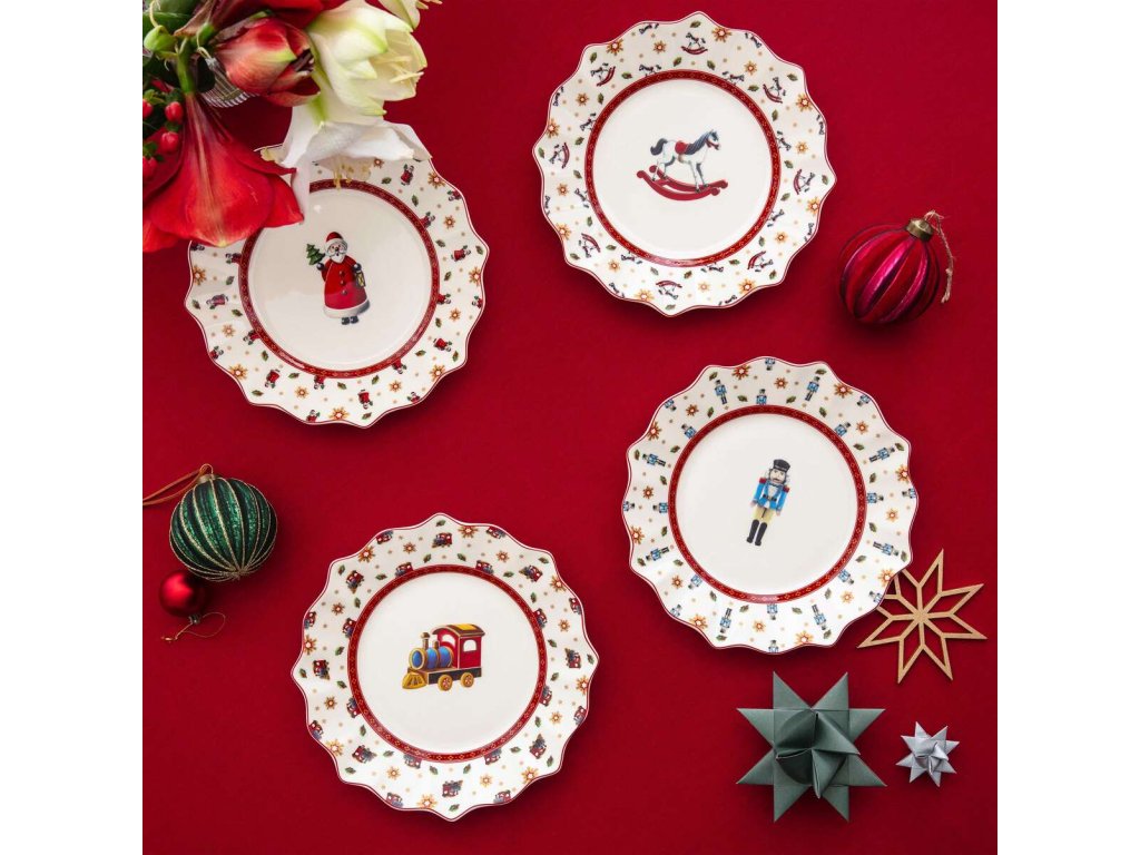 Dodajte svojmu vianočnému stolovaniu slávnostný nádych s kolekciou Toy's Delight Anniversary od značky Villeroy & Boch. Set štyroch veľkých tanierov s priemerom 30,5 cm je ideálny na hlavné chody aj sviatočné špeciality a vďaka svojmu dizajnu vytvorí nezabudnuteľnú atmosféru pri každom stole.