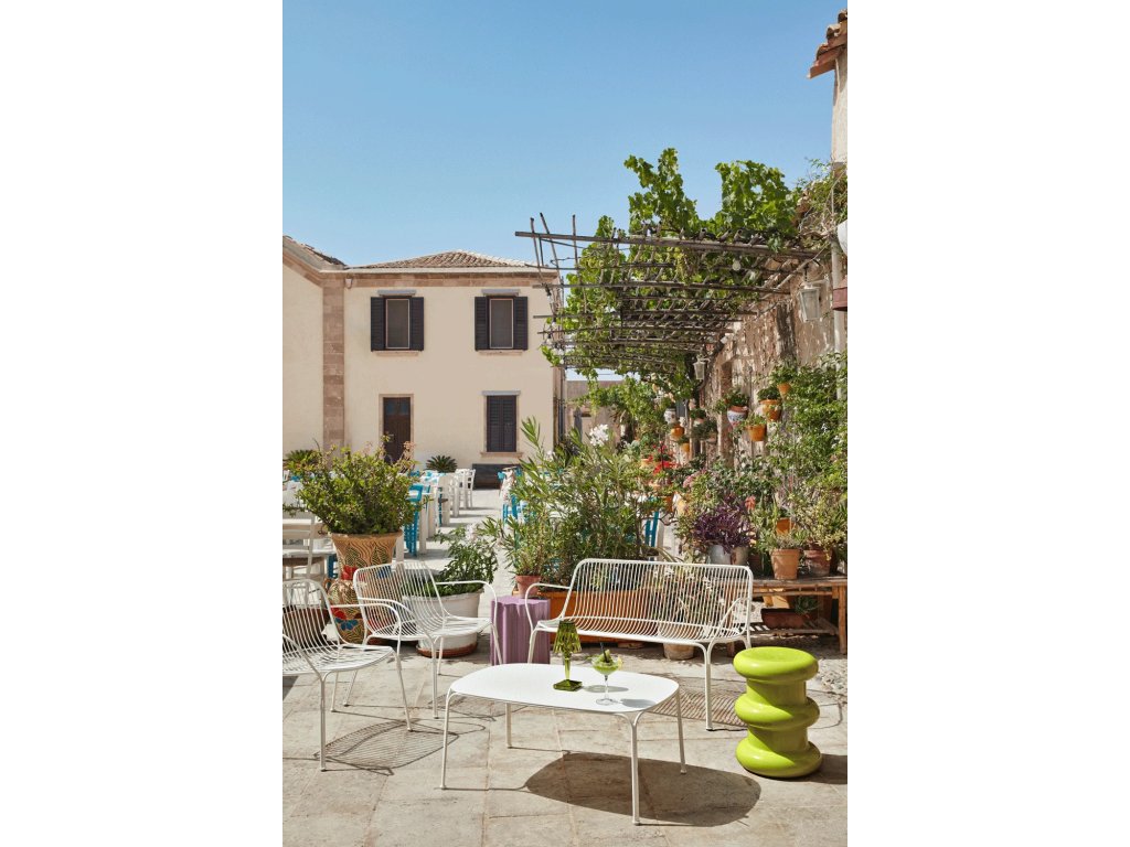 Objavte elegantný nábytok HIRAY určený pre vonkajšie priestory. Kolekcia zahŕňa štýlové stoličky s opierkami aj bez, stoly rôznych veľkostí, kreslá a lavice. Každý kúsok nábytku je dostupný v štyroch rôznych farbách: biela, čierna, hrdza a zelená. Nechýbajú ani praktické podsedáky v rovnakých farbách a rôznych veľkostiach. Pridajte do svojho interiéru nádych modernej elegancie s kolekciou HIRAY od Kartellu. Pohodlné riešenie na vašu terasu či záhradu!