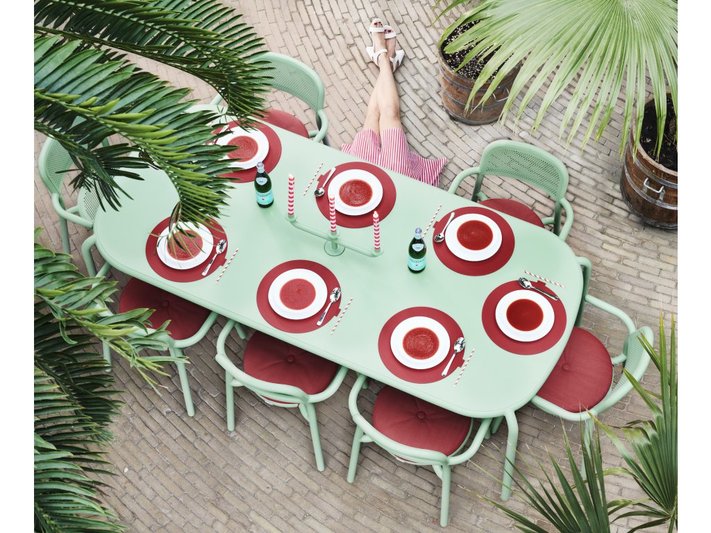 Chcete si dať pohodovú večeru s rodinou a priateľmi, ale chýba vám ten správny stôl, pri ktorom by ste si jedlo naozaj vychutnali? Toní Tablo pre vás má riešenie! S dĺžkou 2,2 metra sa u neho pohodlne posadí až 8 osôb. Otvor uprostred počas dňa slúži ako držiak slnečníka a v noci ho možné použiť pre trojramenný svietnik Toní. Takže cez deň budete chránení pred horúcim slnkom a po jeho západe si budete môcť dať drink pri svite sviečok. Môže snáď večer vyzerať viac romanticky? Ľahký hliníkový materiál zaručuje ľahkú manipuláciu. Nastaviteľné nohy umožňujú meniť výšku stola podľa potreby. Toní Tablo sa ľahko udržuje a je ošetrený najkvalitnejším vonkajším povrchom Axalta. Vďaka tomu je odolný voči hrdzi, nepriaznivým vplyvom počasia a uchováva si svoje farby. Doplňte svoj záhradný set zodpovedajúcimi stoličkami, či už s opierkami (Toní Armchair) alebo bez podrúčok (Toní Chair). Za obstaranie určite stojí aj sada prestierania Place-we-met. Kolekcia Toní je výsledkom spolupráce medzi ikonickou značkou Fatboy a holandským dizajnérom Erikom Stehmannem. Vonkajší stôl Toní Tablo je k dispozícii vo viacerých farebných variantoch.