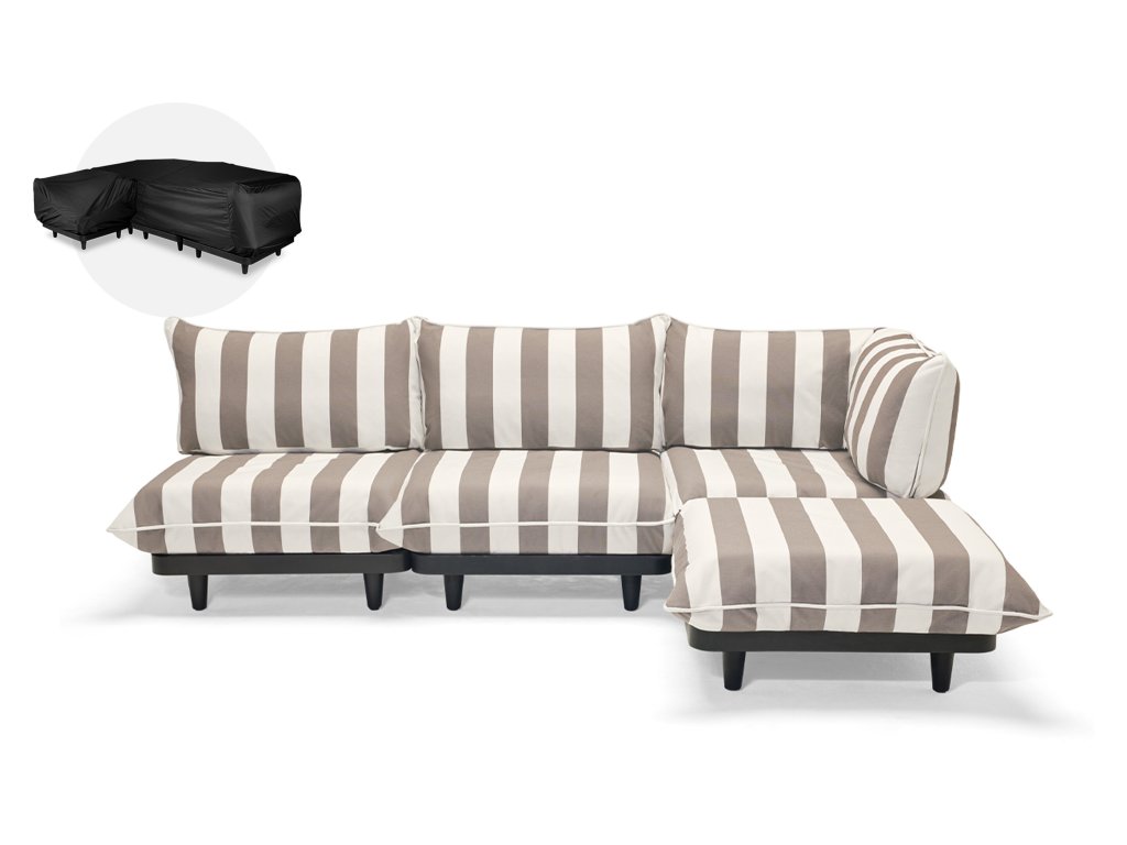 Obsah zostavy Set Large: 2x rohový modul + 2x stredový modul + 1x stolík (Paletti table). Rozmery: celkovo cca 270 x 180 cm, Výška sedu: 45 cm